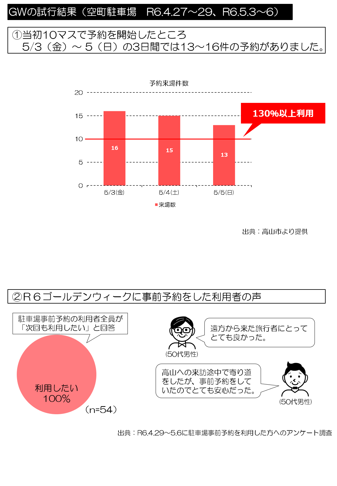 令和6年の5月(ゴールデンウィーク)時の高山市内の駐車場の状況です。