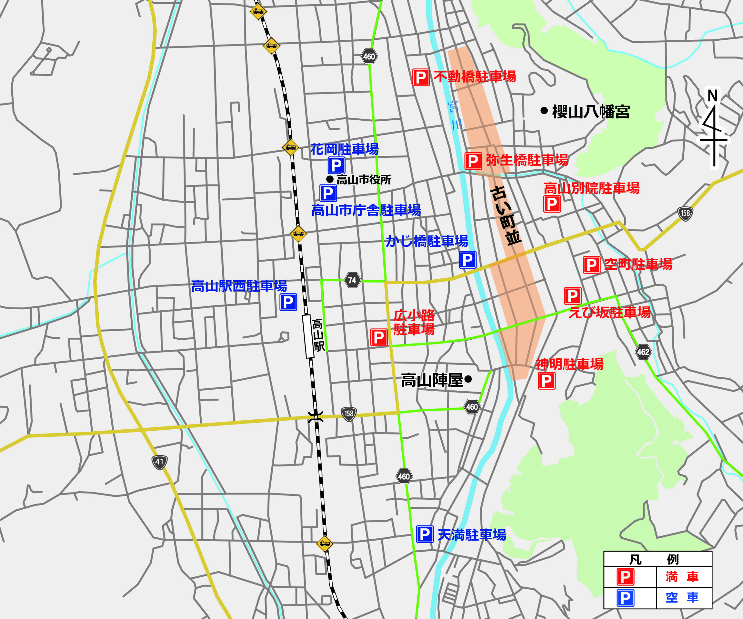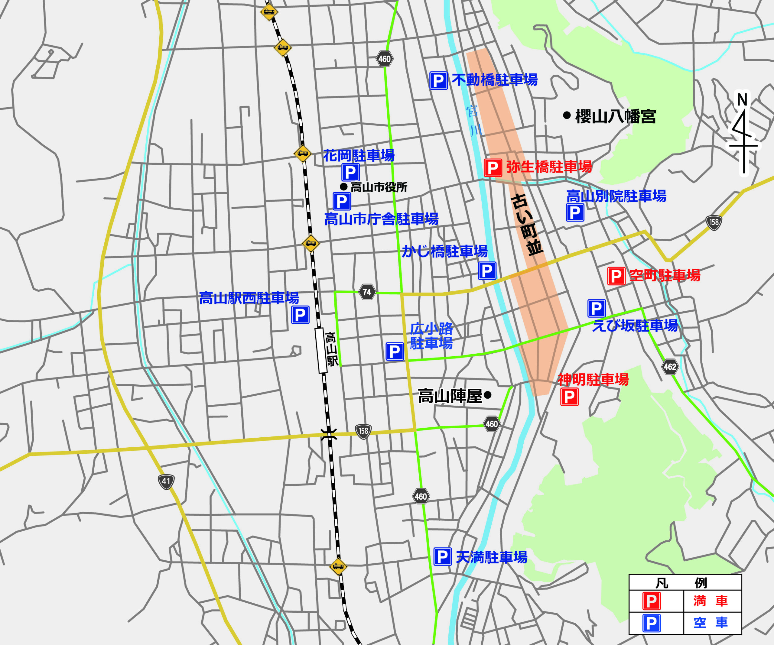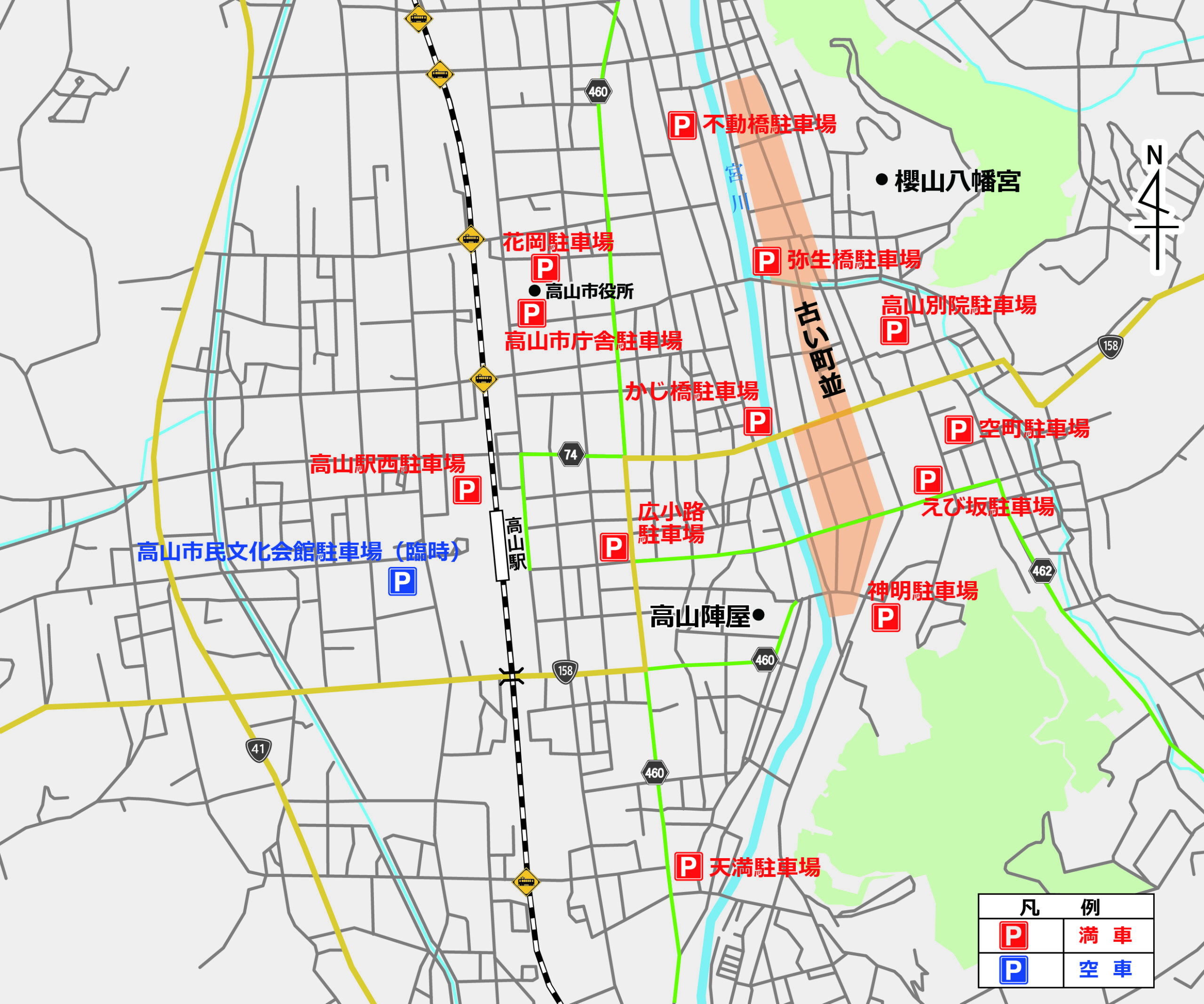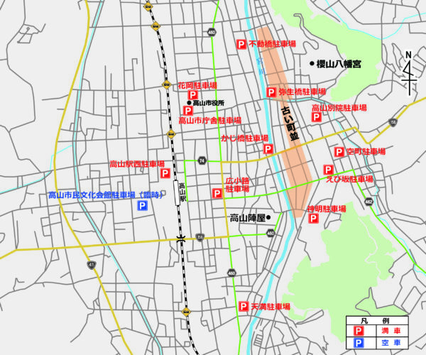 令和6年の5月(ゴールデンウィーク)時の高山市内の駐車場の状況です。