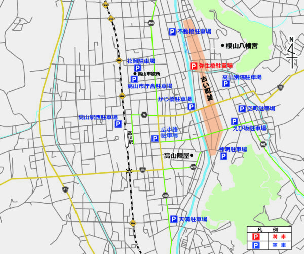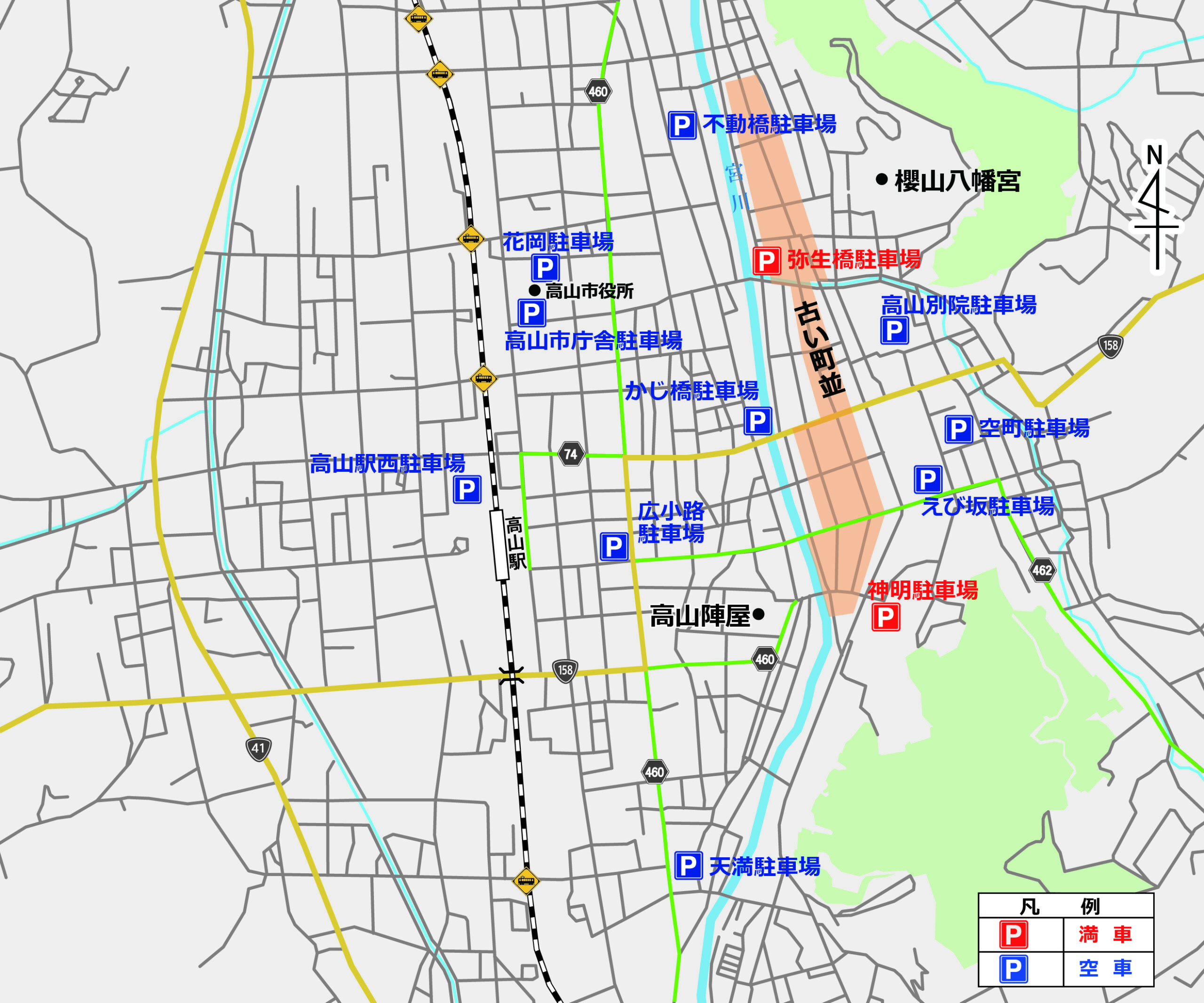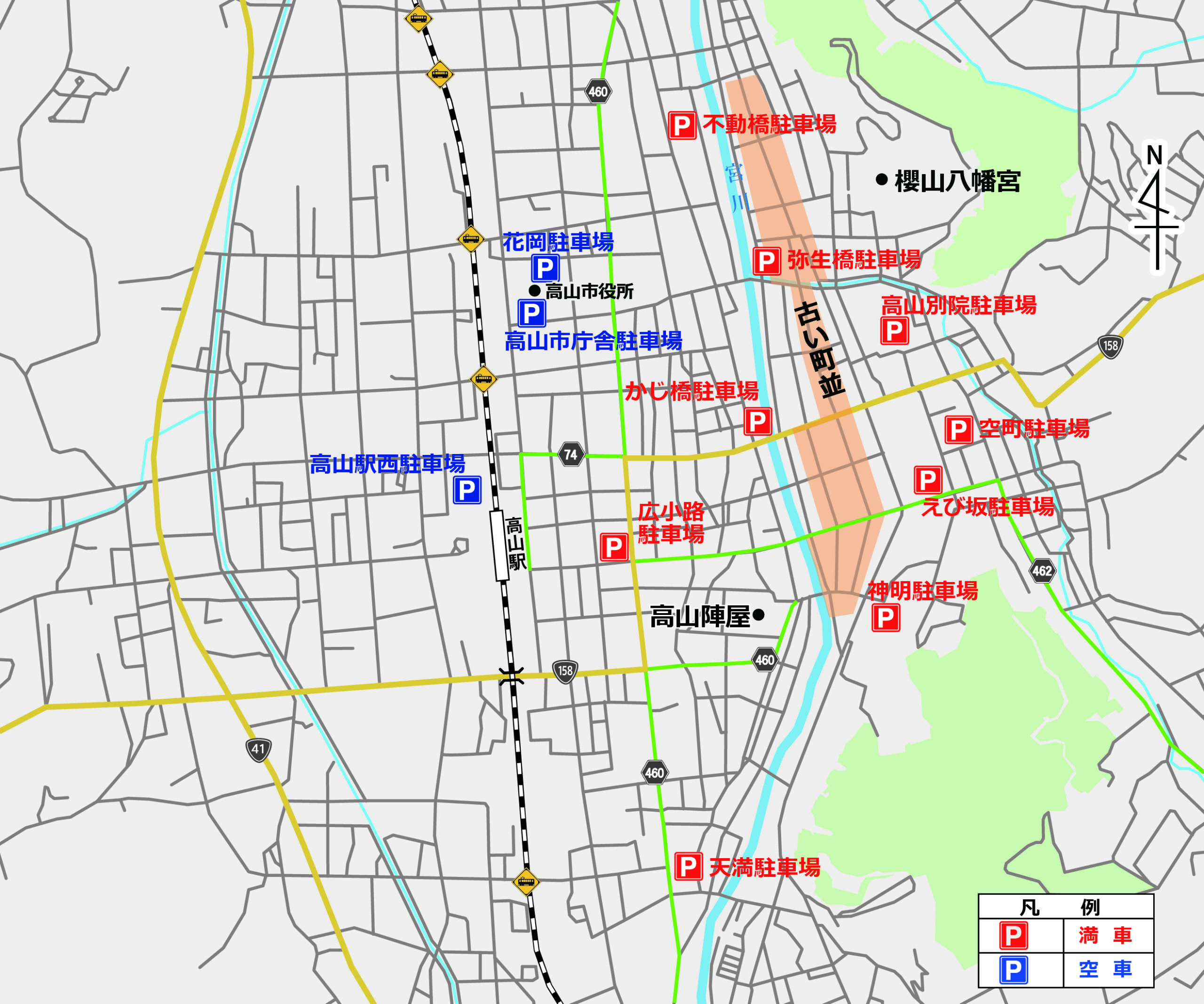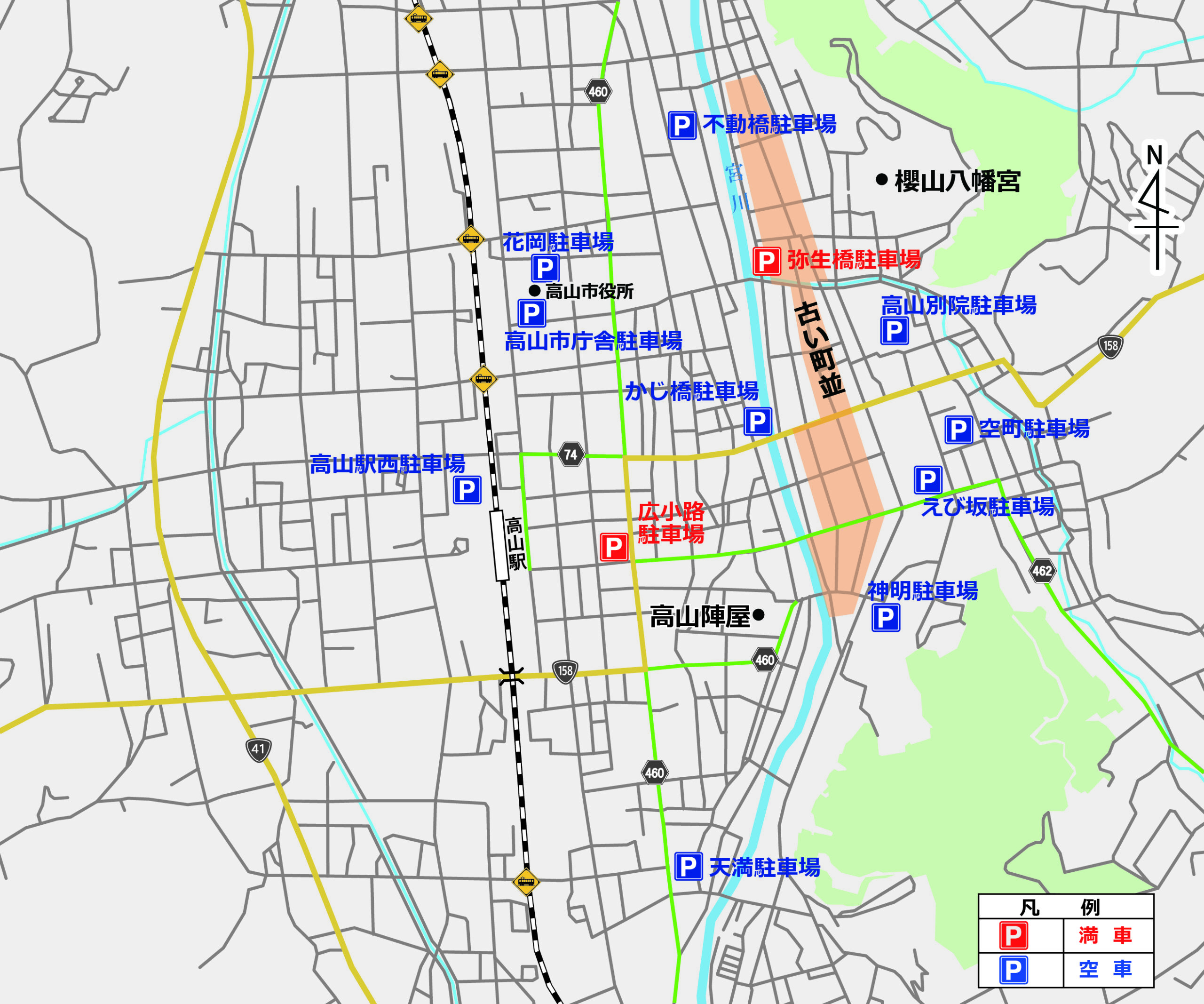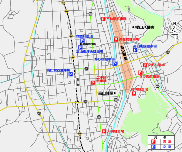 令和6年の5月(ゴールデンウィーク)時の高山市内の駐車場の状況です。